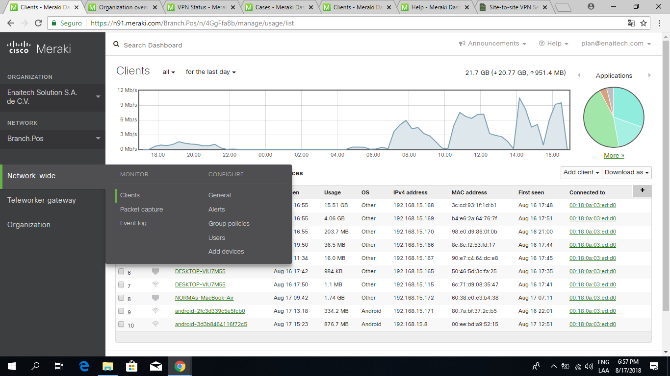 Configuracion de Alerta 1.- ¿Por qué se activa una alerta? Se activan las alertas CUANDO SE EXCEDE MAS DE 20 GB. 2.- ¿Dónde se configura? NETWORK ------> ALERT -----> Network-wide -------> Network usage exceeds Aquí especificamos cuando activar una ...